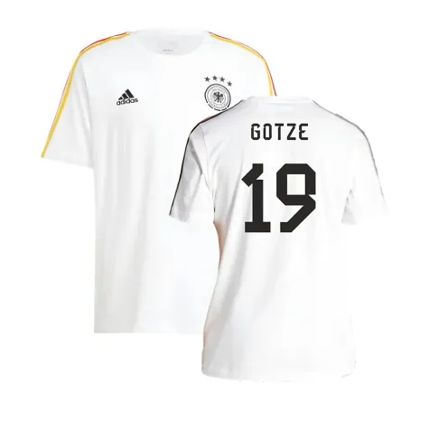 Official Mario Gotze football shirt. This is the NEW Germany 3S DNA Tee (White) for the 2024-2025 season which is manufactured by Adidas and is available in all Adult sizes.