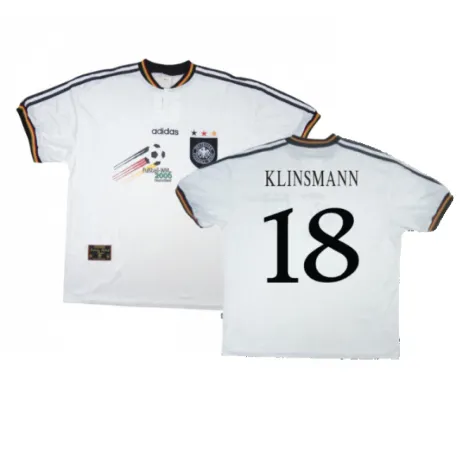 The Germany 1996-98 Home Shirt with World Cup Icon as worn by players such as Kohler, Klinsmann and Sammer as the team won the 1996 European Championships.