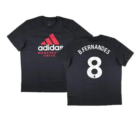 Official Bruno Fernandes football shirt. This is the NEW Man Utd Seasonal Graphic Tee (Night Grey) for the 2024-2025 season which is manufactured by Adidas and is available in all Adult sizes.