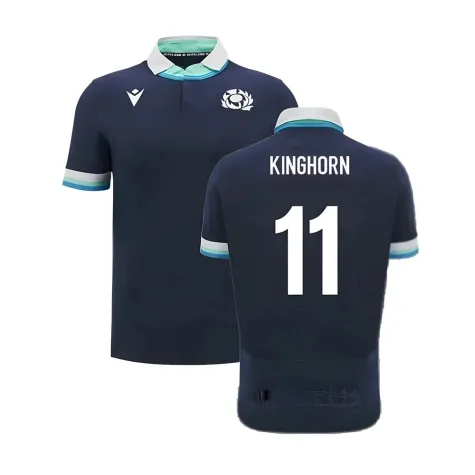 Official Blair Kinghorn football shirt. This is the NEW Scotland Rugby Home SS Cotton Shirt for the 2024-2025 season which is manufactured by Macron and is available in all Adult sizes.
