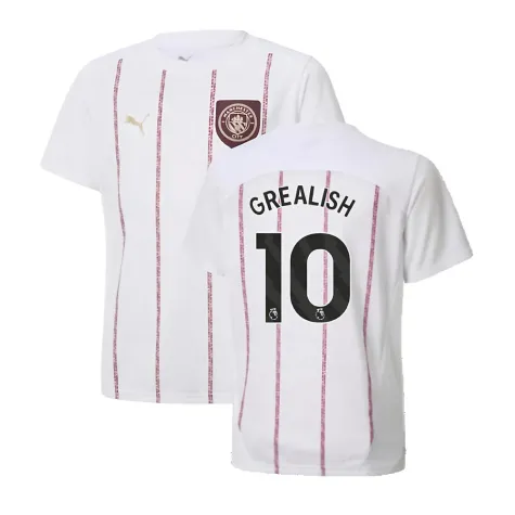 2024-2025 Man City Prematch SS Jersey (White) - Kids (Grealish 10)