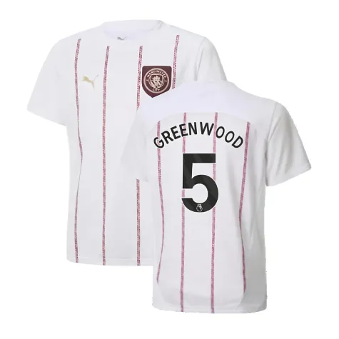 2024-2025 Man City Prematch SS Jersey (White) - Kids (Greenwood 5)