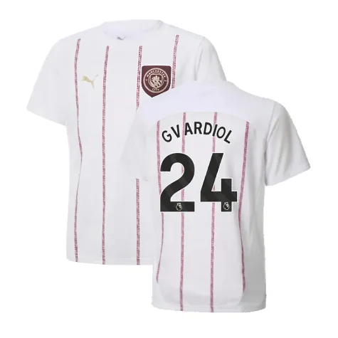 2024-2025 Man City Prematch SS Jersey (White) - Kids (Gvardiol 24)