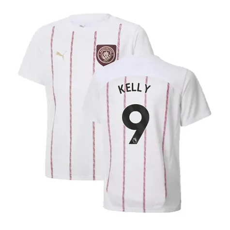 Official Chloe Kelly football shirt. This is the NEW Man City Prematch SS Jersey (White) - Kids for the 2024-2025 season which is manufactured by Puma and is available in all Childrens sizes.