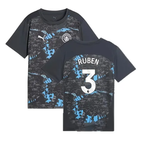 Official Ruben Dias football shirt. This is the NEW Man City Prematch SS Jersey (Strong Gray) - Kids for the 2024-2025 season which is manufactured by Puma and is available in all Childrens sizes.