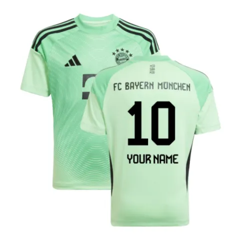 Official Your Name football shirt. This is the NEW Bayern Munich Home Goalkeeper Shirt (Glory Mint) - Kids for the 2025-2026 season which is manufactured by Adidas and is available in all Childrens sizes.