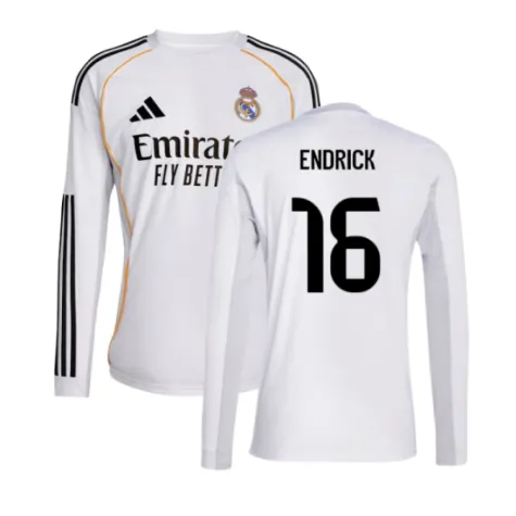 2025-2026 Real Madrid Long Sleeve Home Shirt (Endrick 16)