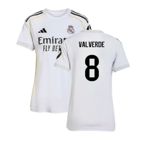 Official Federico Valverde football shirt. This is the NEW Real Madrid Home Shirt (Womens) for the 2025-2026 season which is manufactured by Adidas and is available in all Adult sizes.