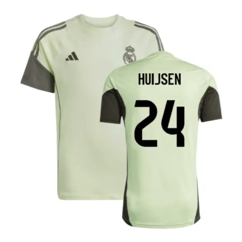 Official Dean Huijsen football shirt. This is the NEW Real Madrid Training Tee (Almost Lime) - Kids for the 2025-2026 season which is manufactured by Adidas and is available in all Childrens sizes.