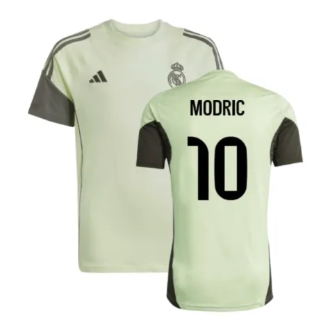 Official Luka Modric football shirt. This is the NEW Real Madrid Training Tee (Almost Lime) - Kids for the 2025-2026 season which is manufactured by Adidas and is available in all Childrens sizes.