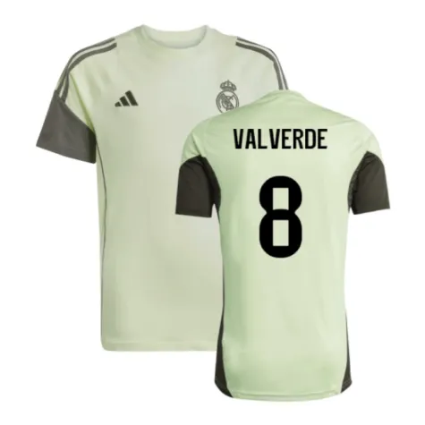 Official Federico Valverde football shirt. This is the NEW Real Madrid Training Tee (Almost Lime) - Kids for the 2025-2026 season which is manufactured by Adidas and is available in all Childrens sizes.