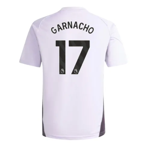 Official Alejandro Garnacho football shirt. This is the NEW Man Utd Training Jersey (Purple Tint) - Kids for the 2025-2026 season which is manufactured by Adidas and is available in all Childrens sizes.