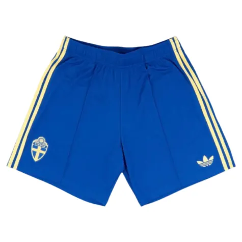 The shorts feature the iconic Adidas three-stripe detailing running down both sides in a warm yellow, perfectly complementing the royal blue base. The Sweden national crest is printed on the left leg, whilst the classic Adidas Trefoil logo sits proudly on the lower right a nod to the heritage styling of this year's away strip.